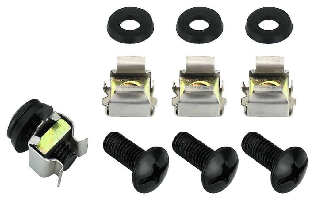Monacor MZF-8645Assortiment de vis, rondelles, écrous pour monter des appareils 19″ dans un rack ou une valise de transport « Flight-Case ». Avec : 4 x écrous prisonniers M6 4 x vis cruciformes M6 x 15 mm 4 x rondelles plastiques