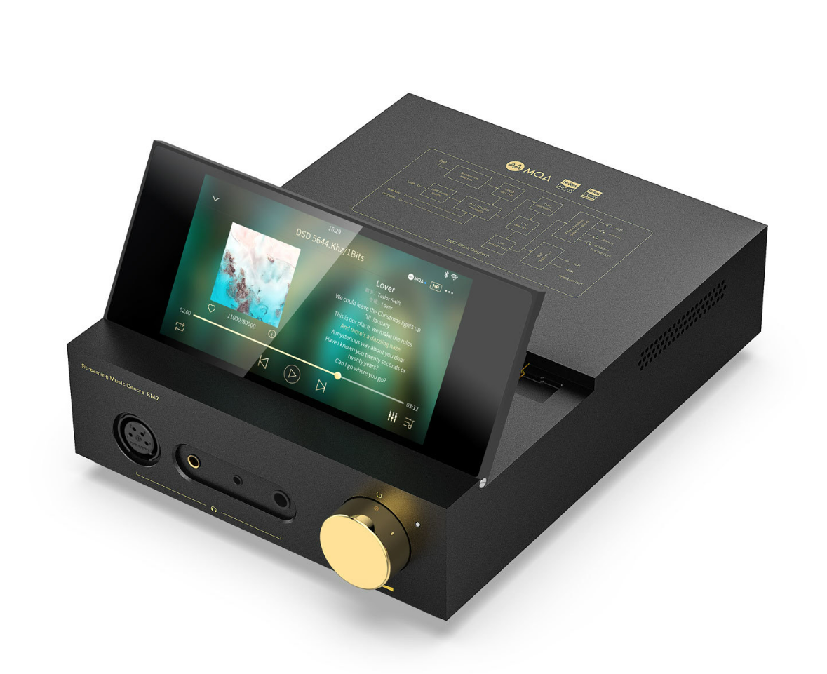 Le Shanling EM7 est un appareil HiFi tout-en-un combinant streamer réseau, DAC et amplificateur casque haut de gamme. Il permet d’écouter de la musique depuis les principaux services de streaming (Tidal, Spotify, Apple Music, Qobuz, Deezer, Amazon Music), un réseau local, un support USB ou une carte microSD.