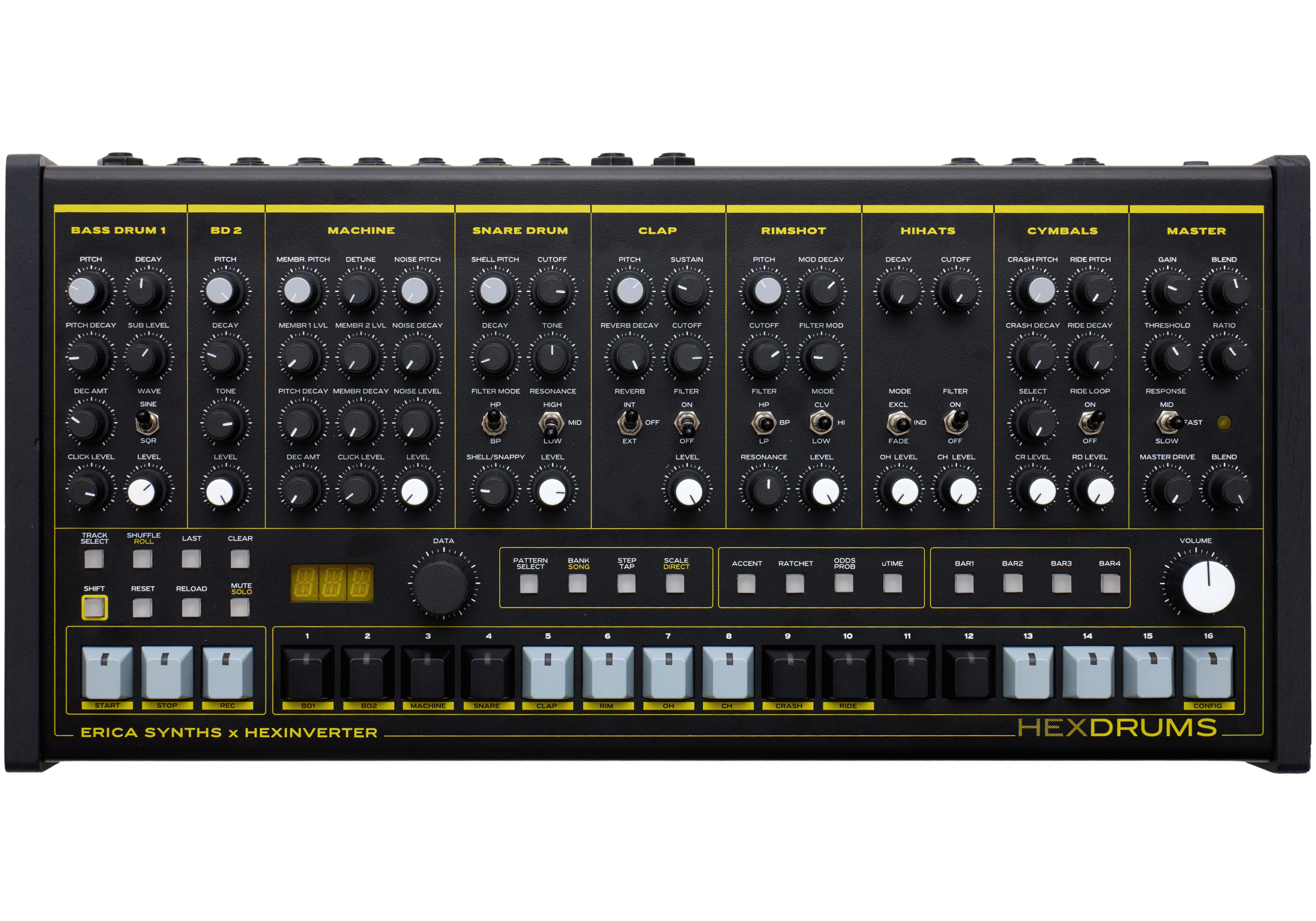 Fusion de la magie industrielle d’Erica Synths et des circuits mutants d’Hexinverter, le HexDrums est une boîte à rythmes innovante alliant tradition et modernité. Conçu pour offrir une flexibilité sonore exceptionnelle dans un format pratique, il reprend les designs classiques tout en intégrant des améliorations techniques avancées.