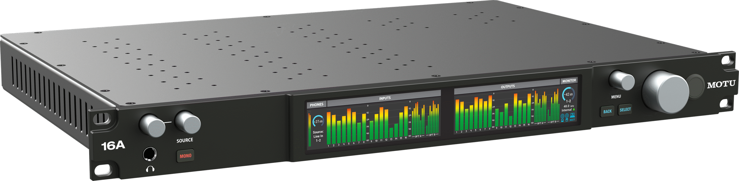 16 entrées analogiques TRS 1/4″ (symétriques/désymétrisées), niveau max +21 dBu
