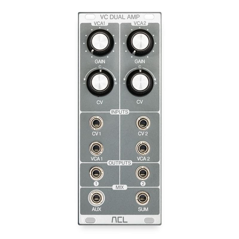 The ACL VC Dual Amp is a high quality dual linear VCA with mixing function.The module contains two fully discrete voltage controllable amplifiers with linear characteristic. It is based on a new circuit design which delivers unheard clarity of sound. To this day there is no other VCA using this special technique!