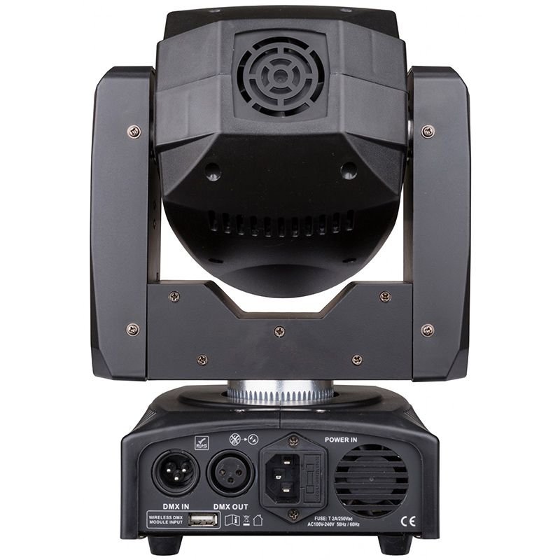 Une lyre à LED spot (10°-30W-blanc) et wash (6 x 8W RVBW) pour les DJ petits clubs.
