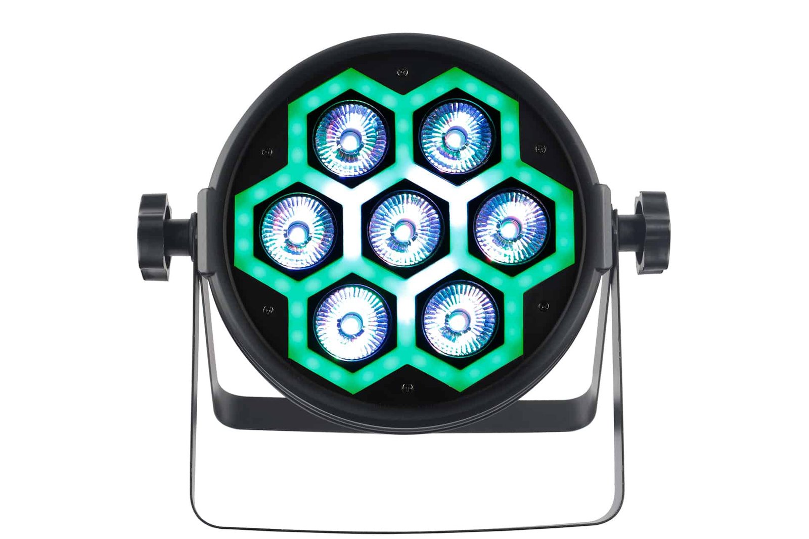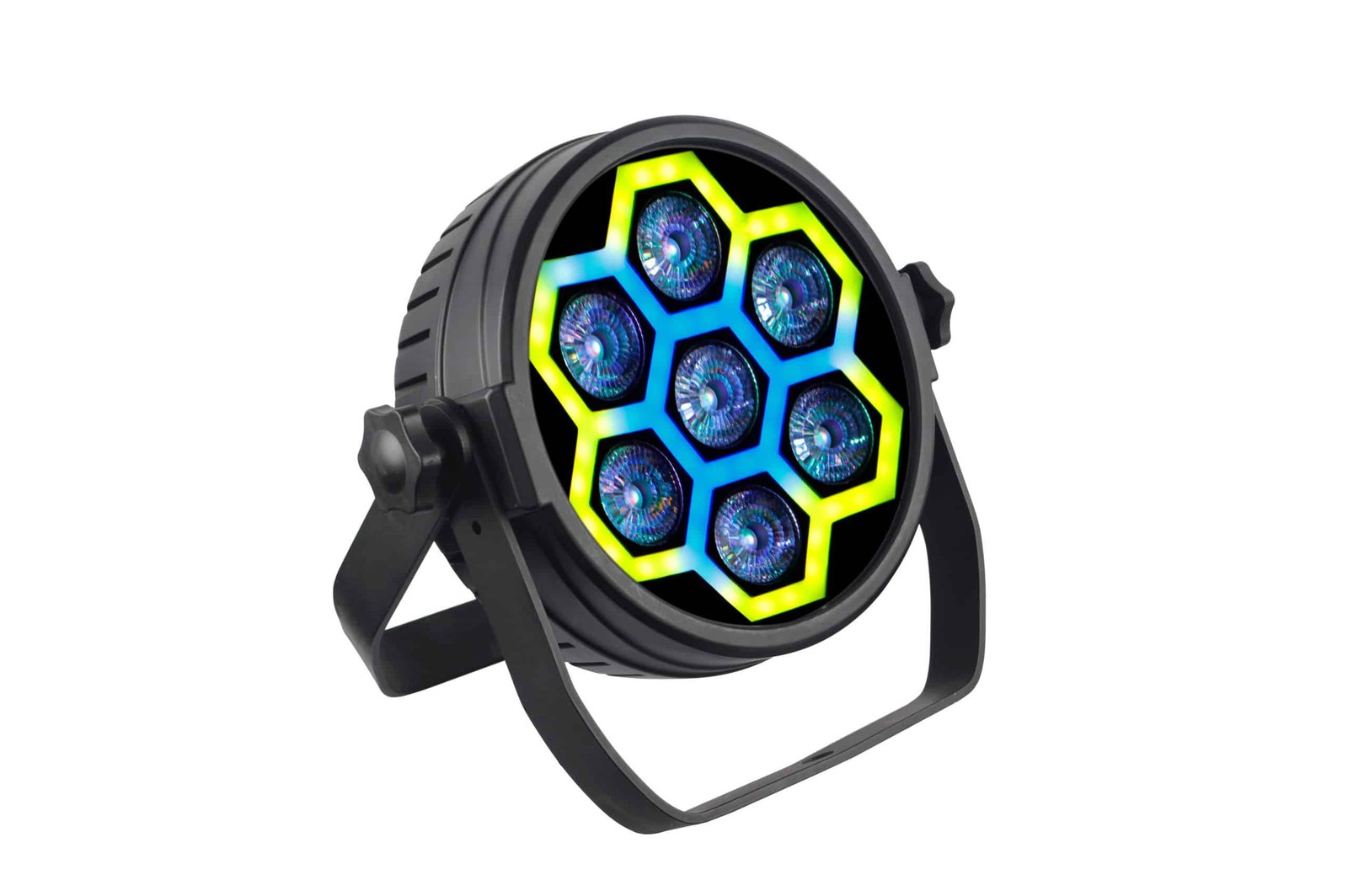- Basée sur 7 LED RGBW de 12 watts et 60 LED RGB de 0,2 watts pour l’effet néon. Angle de faisceau de 26o.