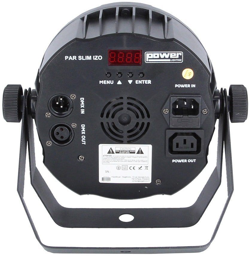 Le PAR SLIM IZO est un projecteur 2-en-1 permettant d’une part un éclairage WASH direct ou indirect avec 3 x LEDs de 18W Hexa (6-en-1) et d’autre part il est équipé d’une couronne de 72 LEDs SMD (composée de 24 rangées de 3 Leds) produisant de superbes effets d’animations visuelles pour plus d’applications variant le sens de rotation des Leds, les couleurs, l’intensité, les superbes programmes internes, le strobe ect…