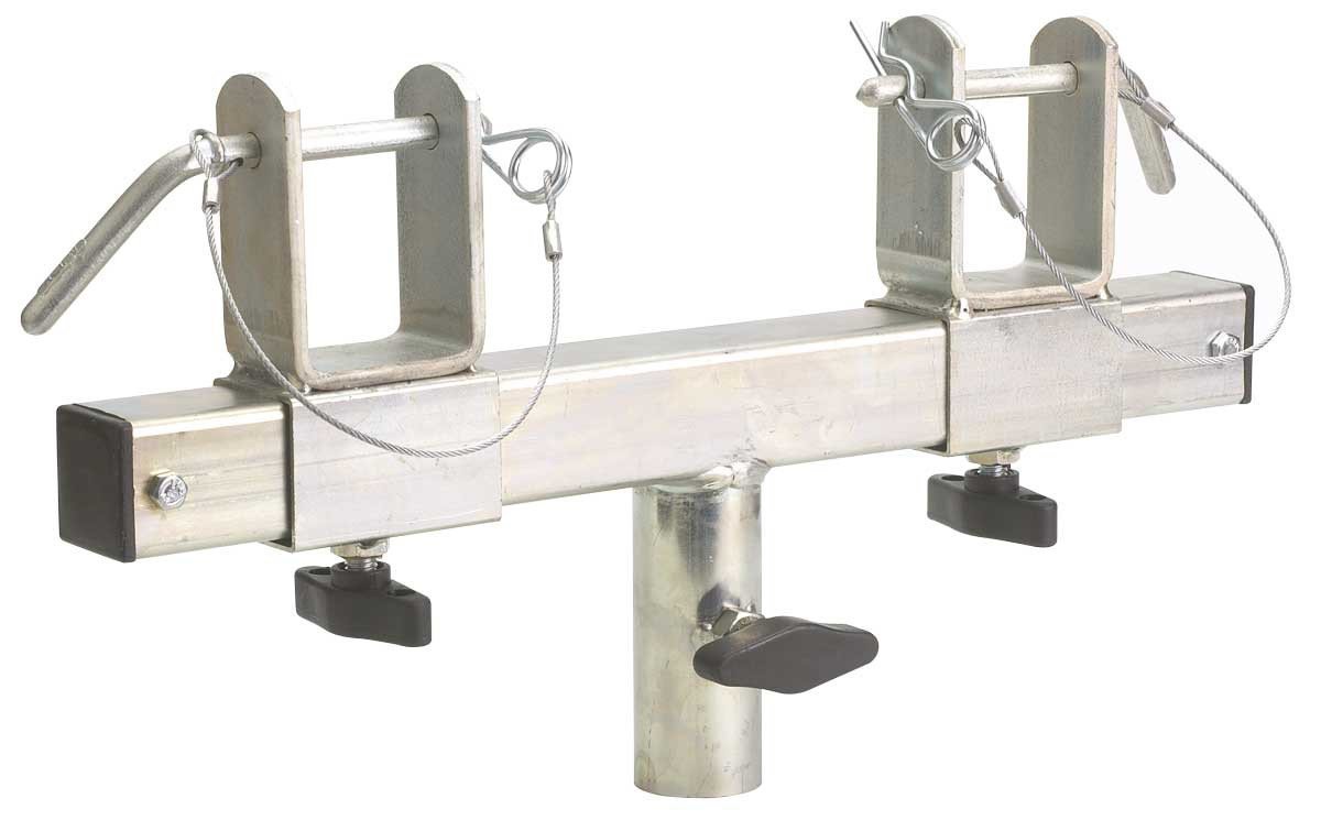 La sécurité est assurée par deux goupilles et la rigidité de l’ensemble par trois molettes de serrage ergonomique.