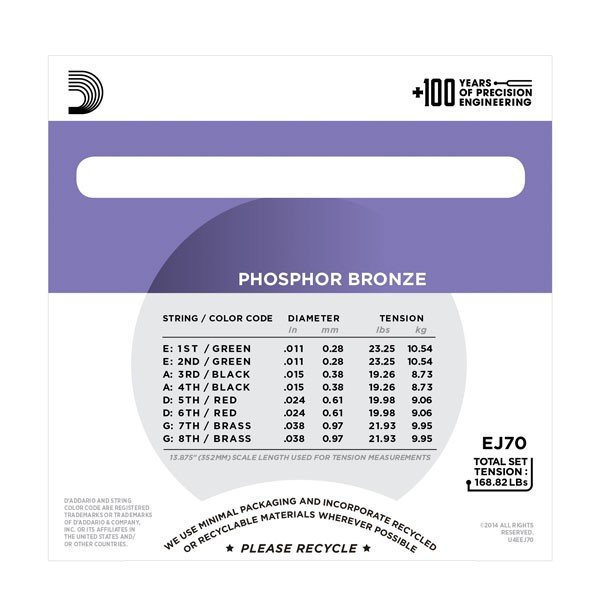EJ70 Phosphor Bronze Mandolin Strings, Ball End, Medium/Light, 11-38 Jeu de cordes pour Mandoline.