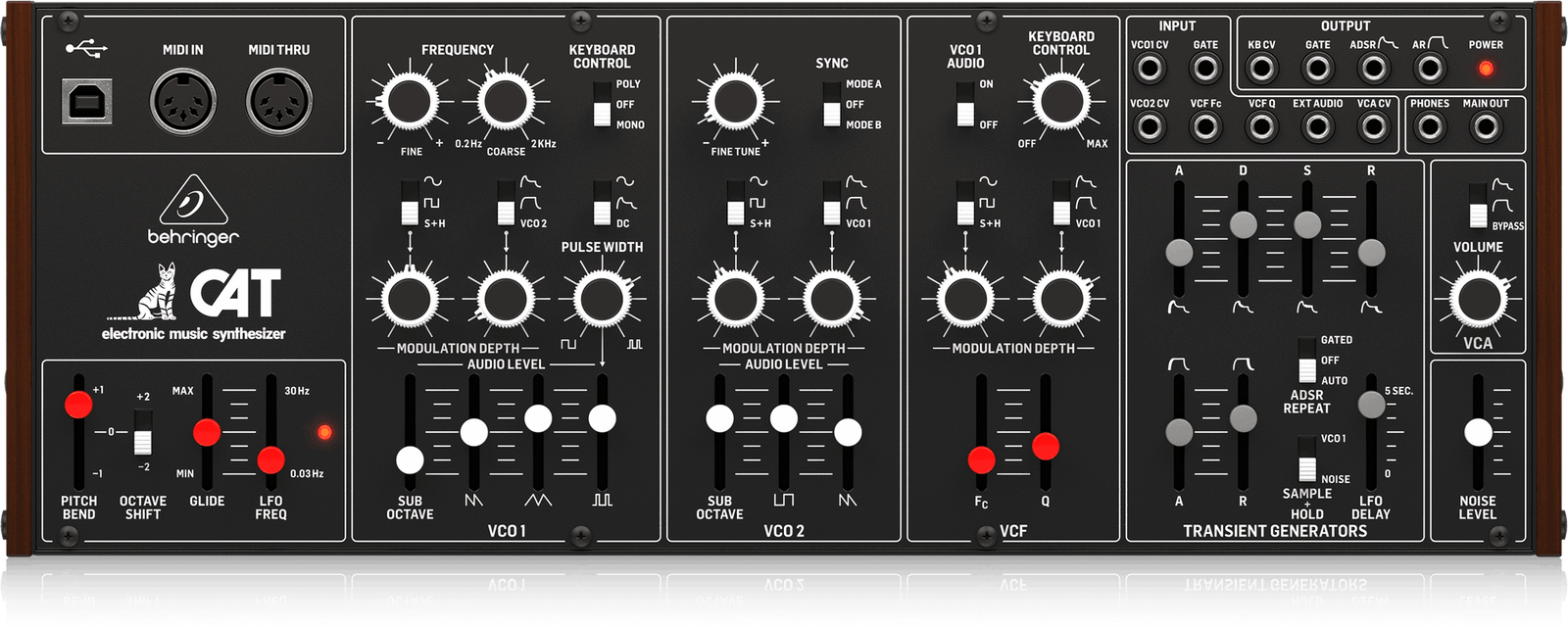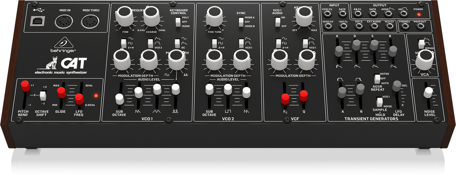 - Chemin du signal purement analogique basé sur des conceptions authentiques de VCO, VCF et VCA.