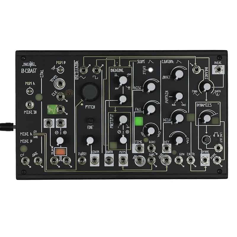 While the 0-COAST utilizes classic modular synthesis techniques, we designed it to operate with or without the use of patch cables. The necessary connections have been made from circuit to circuit so it operates as an expressive, musical MonoSynth. Using only the MIDI controller of your choice you could apply new timbres to your existing musical forms!