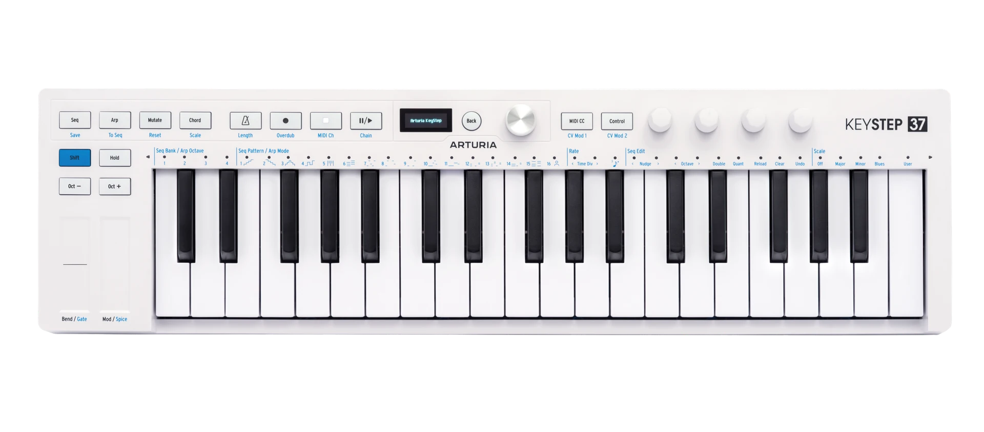4 sorties CV/Gate : Pitch, Gate, Mod 1, Mod 2 (assignables à vélocité, aftertouch, modulation, etc.)