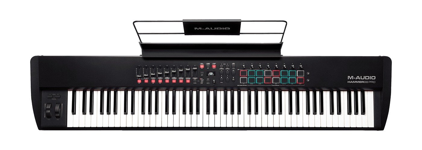 Le M-Audio Hammer 88 Pro est un clavier contrôleur MIDI de 88 touches, alimenté par USB et doté d’une action de marteau graduée !