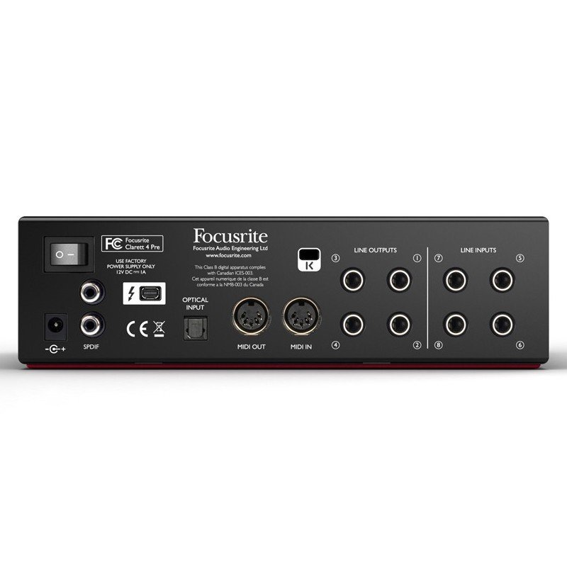 La Focusrite Clarett Pre Thunderbold Interface Audio 4 regorge de toutes les dernières technologies de Thunderbolt qui fournit une vitesse impressionnante et audio de haute qualité avec une très faible latence de moins de 1 ms. Avec des fréquences d’échantillonnage de 24 bits / 192kHz, cette interface audio 4 canaux est idéale pour enregistrer la guitare et au chant et vous offre un son haut de gamme. Les quatre préamplis de micro Clarett neufs en vedette sur la réplique de pré Clarett 4 la résonance impédance et transformateur de l’ISAS classique, offrant une précision exceptionnelles, ainsi que de son emblématique dont Focusrite est connue. Avec une Plage dynamique de meilleur-dans-classe, vous pouvez être sûr de profiter de conversion cristalline dans cet appareil compact et léger. Cette interface inclut rouge 2 & 3 plug-in Suite modélisées sur Focusrite classique rouge 2 égaliseur et matériel compresseur rouge 3.Caractéristiques :