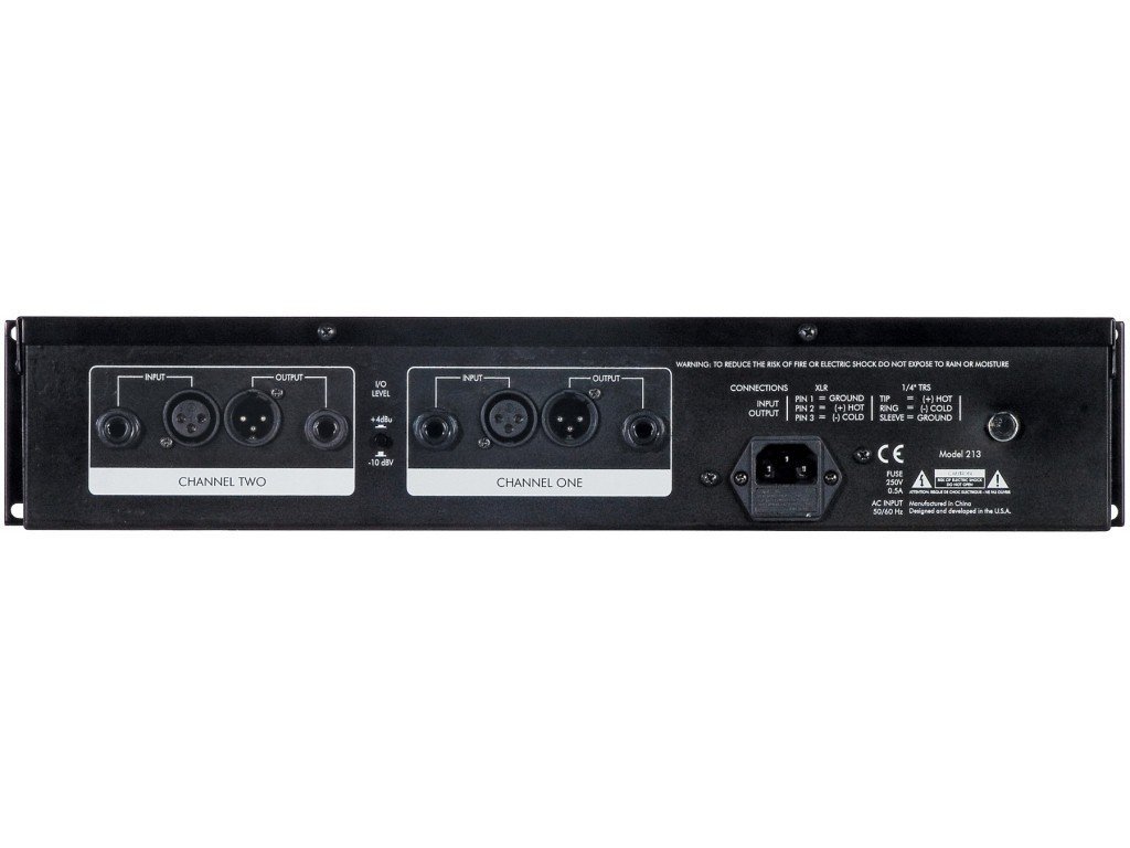 Equivalent Input Noise@ 4dBu: -99dBu ( »A » weighted)@-10 dBV: -107dBu ( »A » weighted)Maximum Attenuation: 30dBInput Impedance: 10K OhmsMaximum Input Level: 20dBu (in 4dBu mode) / 10dBV (in -10dBV mode)Maximum Output Level: 20dB maxFrequency Response: 10Hz to 100KHz ( /- 0.5dB)Dynamic Range: > 100dB (20-20KHz)Attack Time: 0.25msec. to 50msec. variableRelease Time: Variable 150ms to 3sTotal Harmonic Distortion: <0.1% (typical)Slope: Variable 2:1 to 20:1Dimensions: 3.5″ x 19″ x 9.2″ (8.9cm x 48.3cm x 23.3cm)Weight: 10.5lbs (4.76kg)