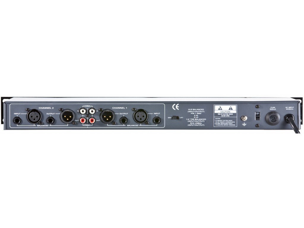 Channel Separation: > 50dBControls:Power On/Off Switch; L/R Filter Range Switch; L/R Bypass Switch; L/R Level Control; Ground Lift SwitchFilter Type: Constant Q – 3% center accuracyFrequency Bands: 2×15, 2/3 octave, ISO spacingFrequency Response: 20Hz to 20kHz, 0.5dBIndicators: 6dB/12dB Range LEDs; Bypass and Clip LEDsInput Impedance: 20k ohms (bal), 15k ohms (unbal)Input/Output Connections: Active balanced XLR and 1/4″ TRS {XLR pin 2/ 1/4″ tip = Hot ( )} Unbalanced RCAMaximum Input Level: 22dBmMaximum Output Level: 18dBm (bal), 22dBm (unbal)Power Consumption: 12 wattsRange: /-6dB or /-12dB selectableSignal to Noise Ratio: -94dBSlider Travel: 20mm w/ positive center detentTotal Harmonic Distortion: 0.0001Dimensions: 1.75″H x 19″W x 8.5″DWeight: 4.5lbs (2.5kg)