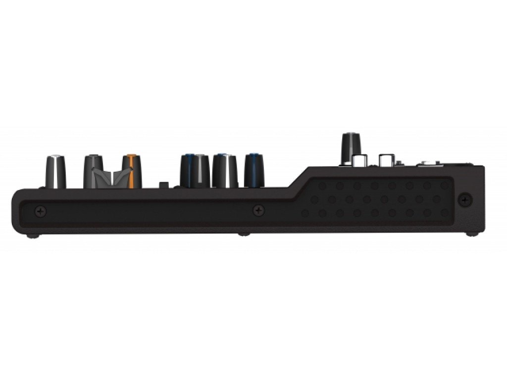 Table de mixage 8 canaux avec 12 effets ajustables par piste et EQ 3 bandes- 4 entrées mic/line XLR avec pré-amp high-headroom EQ 3 bandes- Alimentation fantôme- 1 départ aux. stéréo 6,35 mm- 4 entrées stéréo- Entrées/sorties RCA dédiées pour enregistrement et lecture- Potentiomètre 60 mm sorties Main L/R, casque avec volume séparé- 12 effets de grande qualité sonore intégrés- Égaliseur 3 bandes:- Aigus: 12 kHz, /- 15 dB- Médiums: 2.5 kHz, /- 15 dB- Graves: 80 Hz, /- 15 dB- boîtier: métal- Dimensions: 297 x 244 x 53 mm- Poids: 1,7 Kg