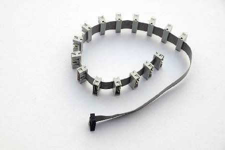 Un connecteur femelle à 16 broches et 15 connecteurs mâles à 16 broches.