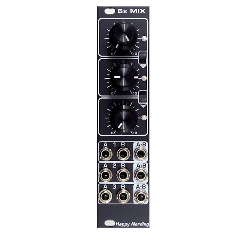 6xMIX is a six channel audio (AC coupled ) mixer, channels arranged in three groups with separate outputs having led indicators.