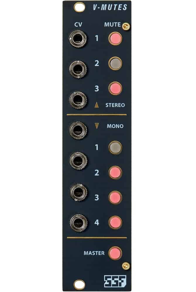 Ce module permet de couper sans clic les 4 canaux mono, les 3 canaux stéréo ainsi qu’une fonction MASTER Mute qui peut couper les 7 canaux en une seule fois.
