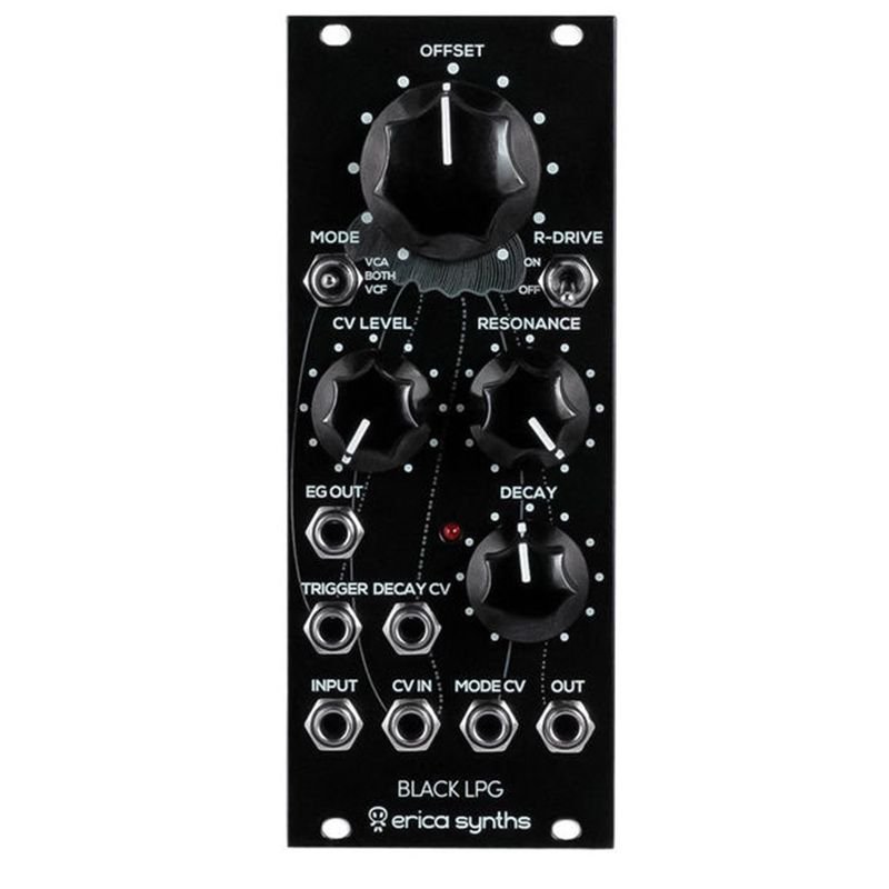 it’s designed from scratch featuring 2nd order lowpass VCF (the original Buchla lowpass gate was 1st order VCF) and VCA combo with distinct resonance circuit on top. Voltage control over VCF cutoff frequency/VCA offset and mode (VCF/VCF VCA/VCA), as well as built in decay envelope generator makes it a versatile module for sound shaping in any modular setup.